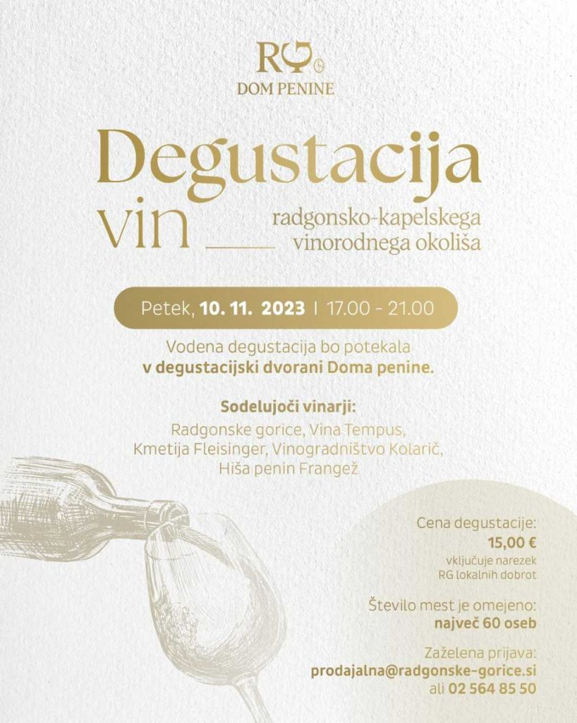 Vabljeni na vodeno degustacijsko izkušnjo vin radgonsko-kapelskega vinorodnega okoliša, kjer bomo poleg vin Radgonskih goric pozdravili še ostale sodelujoče vinarje – Vina Tempus, Kmetija Fleisinger, Vinogradništvo Kolarič in Hiša penin Frangež.